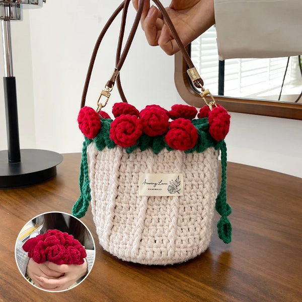 Discover a unique fashion statement with our crochet rose bag. Its intricate design adds flair to any outfit, transforming simple looks into something extraordinary. You'll be the center of attention wherever you go.