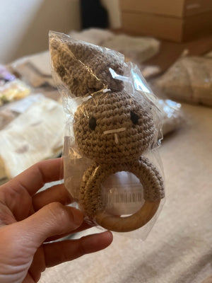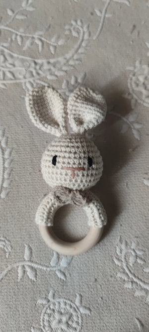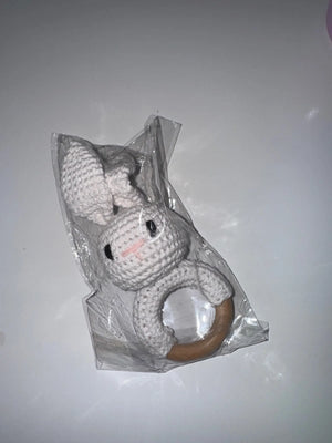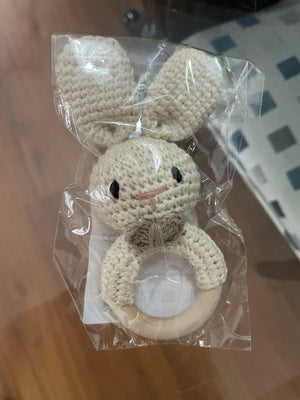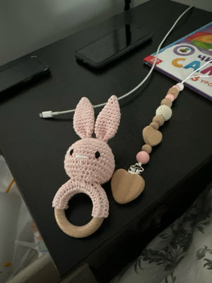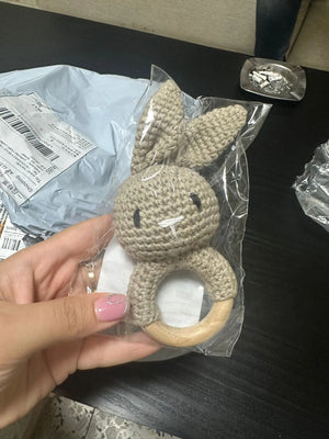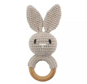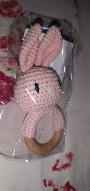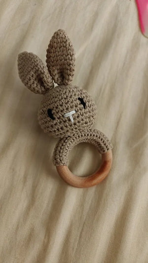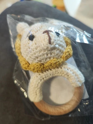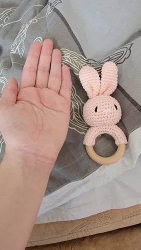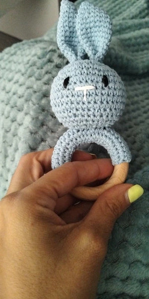 The soft crochet and wooden design are perfect for my teething toddler. It's safe and engaging!